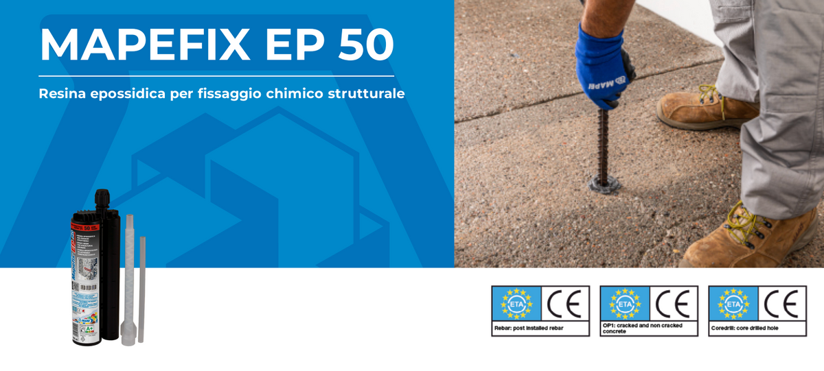 Mapefix EP 50 è un adesivo per il fissaggio chimico di barre metalliche in fori praticati nei materiali edili. È un prodotto a 2 componenti a base di resina epossidica pura senza solventi.