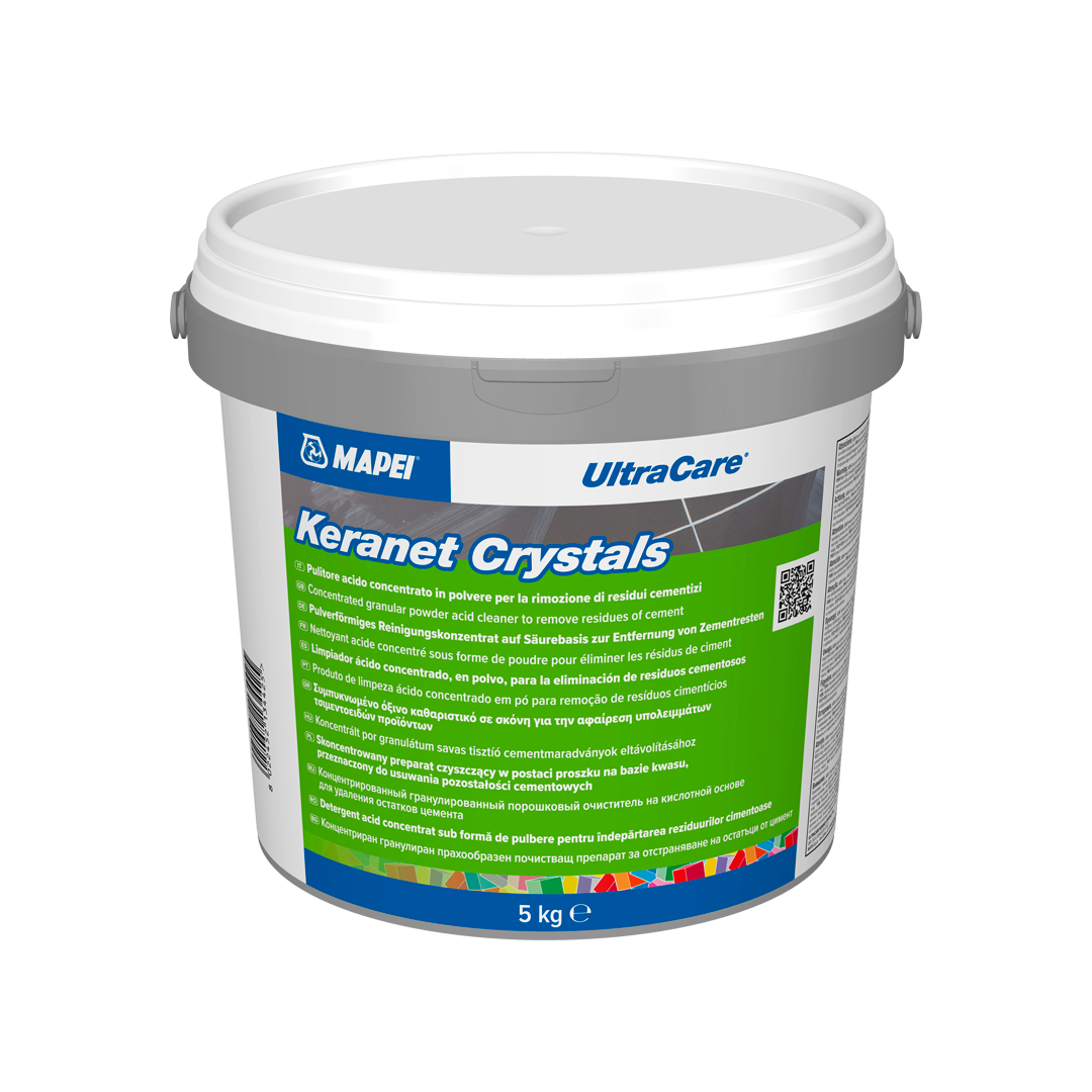 ULTRACARE KERANET CRYSTAL è un pulitore acido concentrato in polvere, solubile in acqua, ideale per la pulizia profonda di fine posa e stuccatura con prodotti cementizi. Perfetto per la rimozione di residui cementizi stagionati e aloni da superfici quali cotto, piastrelle ceramiche, pietre naturali resistenti agli acidi. Idoneo per la pulizia di efflorescenze saline e calcaree.