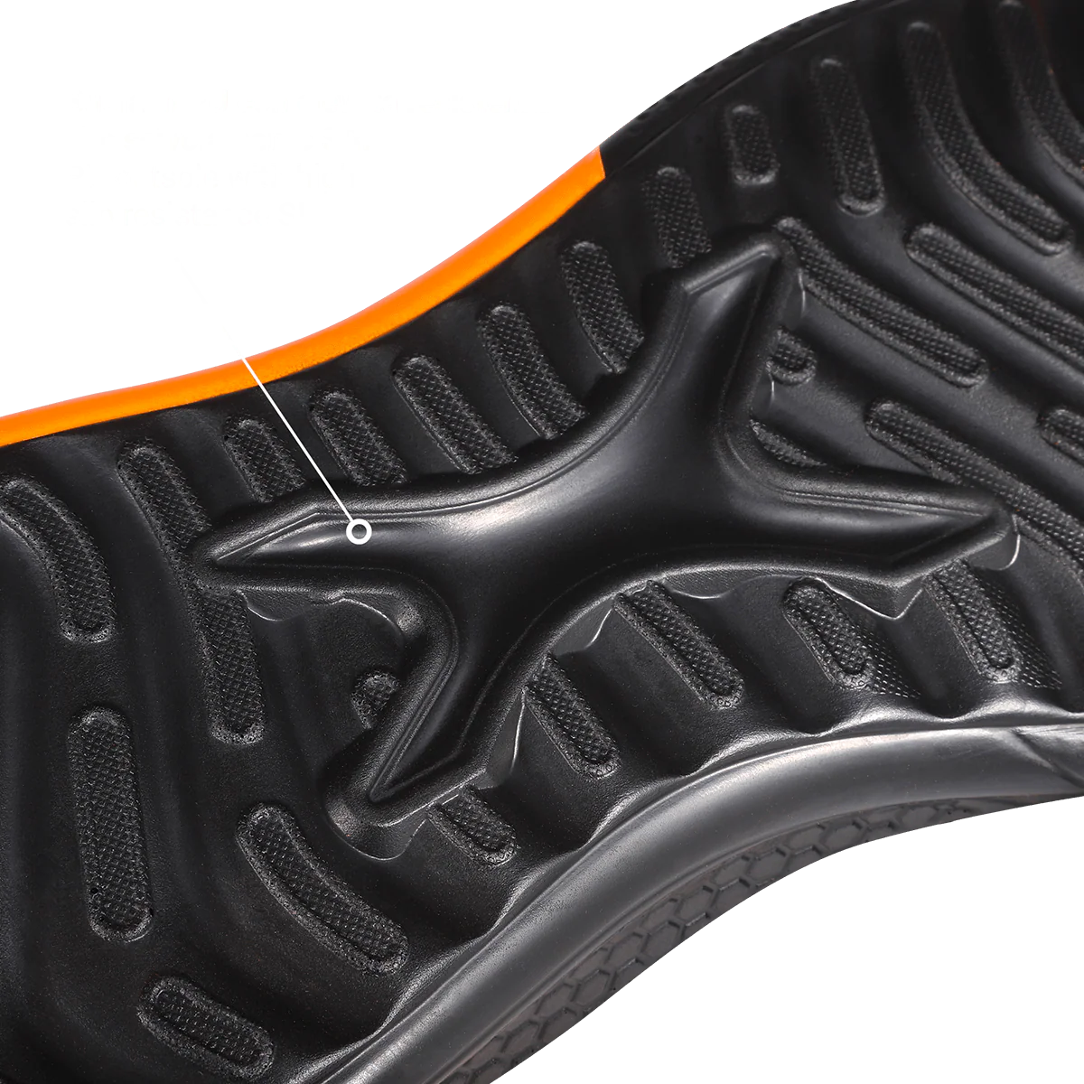 Suola in PU con elevata resistenza allo scivolamento SRC, protezione chimica ad oli ed idrocarburi. Antistatica, leggera, flessibile e morbida. I colori Shock Fluo non passano inosservati, nemmeno in condizioni di scarsa visibilità.