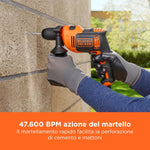 - AZIONE DEL MARTELLO FINO A 47.600 BPM PER UNA FACILE PERFORAZIONE DELLA MURATURA: il trapano eroga un martellamento rapido (colpi al minuto) durante la rotazione, aiutando la punta a perforare superfici dure come mattoni, cemento e pietra.