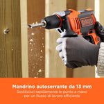 - MANDRINO AUTOSERRANTE DA 13 MM PER CAMBI DI PUNTA FACILI E VELOCI: Il mandrino da 13 mm tiene saldamente un'ampia gamma di punte da trapano e il design senza chiave consente di cambiare le punte a mano senza bisogno di strumenti speciali. In questo modo è possibile passare in modo semplice e veloce da un'attività all'altra, come la foratura di legno, metallo o muratura.