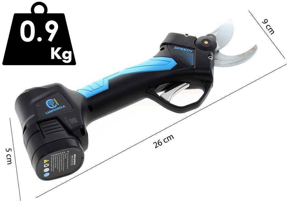 Si distinguono nel mercato grazie a fattori molto importanti, come ad esempio, l'importante autonomia, la potenza e la velocità di esecuzione unita all'efficienza nel taglio. La forbice SPEEDY ha un peso estremamente ridotto (solo 0,890 Kg), un’impugnatura ergonomica che non apporta nessun fastidio all'operatore durante le operazioni taglio.